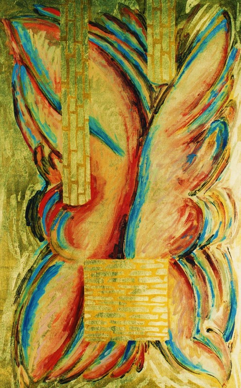 1988 - 07 - Barras en busca de un dorado - Acrilico s. pan de oro y tela 130x81 - A. Metamorfico
